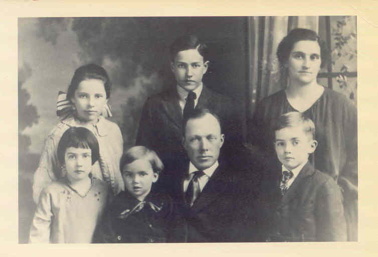 Here's a picture of Charles, with brother Walter, probably taken in a studio in the 1890s. This studio picture of Mildred and Margaret was probably taken about 1917. Here is a studio picture of Keith and Dick, and another studio picture, also probably from the 1920s, which includes Mildred, Margaret, Warren, Howard, Charles, James and Janette. A picture at the farm from about the same time, believed to be in front of the house where Mary was later born, includes Margaret, James, Janette, Warren, Mildred, Charles and Howard.